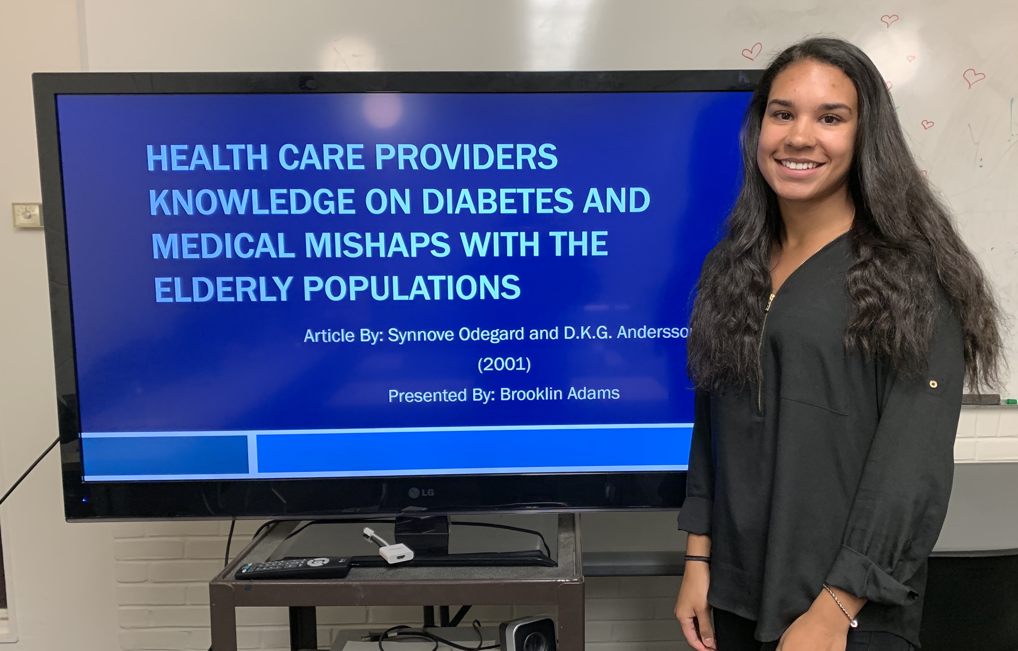 Second semester undergraduate member, Brooklin, recently gave her second article presentation. She guided the lab through Knowledge of diabetes among personnel in home-based care: how does it relate to medical mishaps? by Synnove Odegard and D.K.G. Andersson, published in 2001. This study aimed to assess the influence of deficiencies in knowledge about diabetes, diabetes care, and patient safety. The researchers administered a questionnaire to nurse’s aides and assistant nurses in both institutional care settings and home-based care settings. Results showed that majority of the participants, who hold responsibilities for giving insulin injections, expressed not having enough knowledge about diabetes. They also found that nurse’s aides were more likely to make errors in the field when treating their diabetic patients, due to a lack of adequate knowledge on the disease and its treatment methods, and the lack of colleague interaction in home based settings. The researchers hope their findings will help increase the requirements of nurse’s aides and assistants who work closely with elderly diabetic patients and help to create programs for those working in the field. Doing so would help decrease potentially serious mishaps in health care systems and increase overall patient care. Brooklin plans to continue working with the topic of medical mishaps throughout the rest of the semester in the lab. Great job on your article presentation, Brooklin, and good luck with future research!