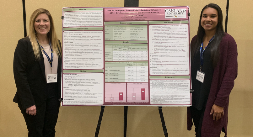 Velinka and Brooklin presented their project titled How do Immigrant Parent-Child Adaptation Differences Affect Psychological Distress and Personal Growth in Immigrant Youth? They examined the psychological effects of youth-perceived parent-child adaptation differences and potential posttraumatic growth (PTG). They predicted that smaller-perceived adaptation differences will yield lower levels of psychological distress. The findings suggest that the degree of parent-child adaptation differences may affect distress and growth in youth.