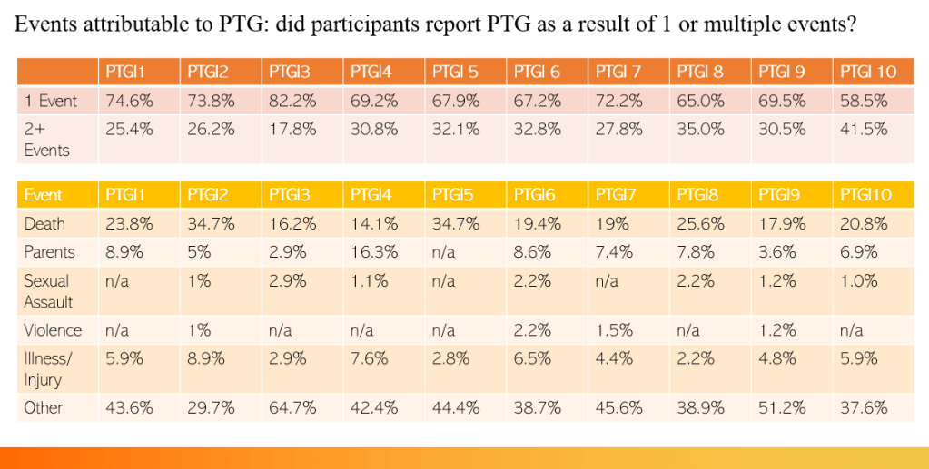 Senior undergraduate member, Kat, gave a presentation on The Impact of Multiple Events on Posttraumatic Growth in Adolescence. Based on previously collected data, Kat’s presentation examines the relationship between different measures of trauma severity and PTG within a sample of high school students. In addition, PTG is uniquely measured as a result of multiple events, rather than just one. Her analysis found that the number of events experienced linearly and positively correlated with PTG, as did reports of stressfulness at the time of the event(s). When filling out the PTGI, participants were more likely to experience specific aspects of PTG as a result of one event, rather than multiple events.