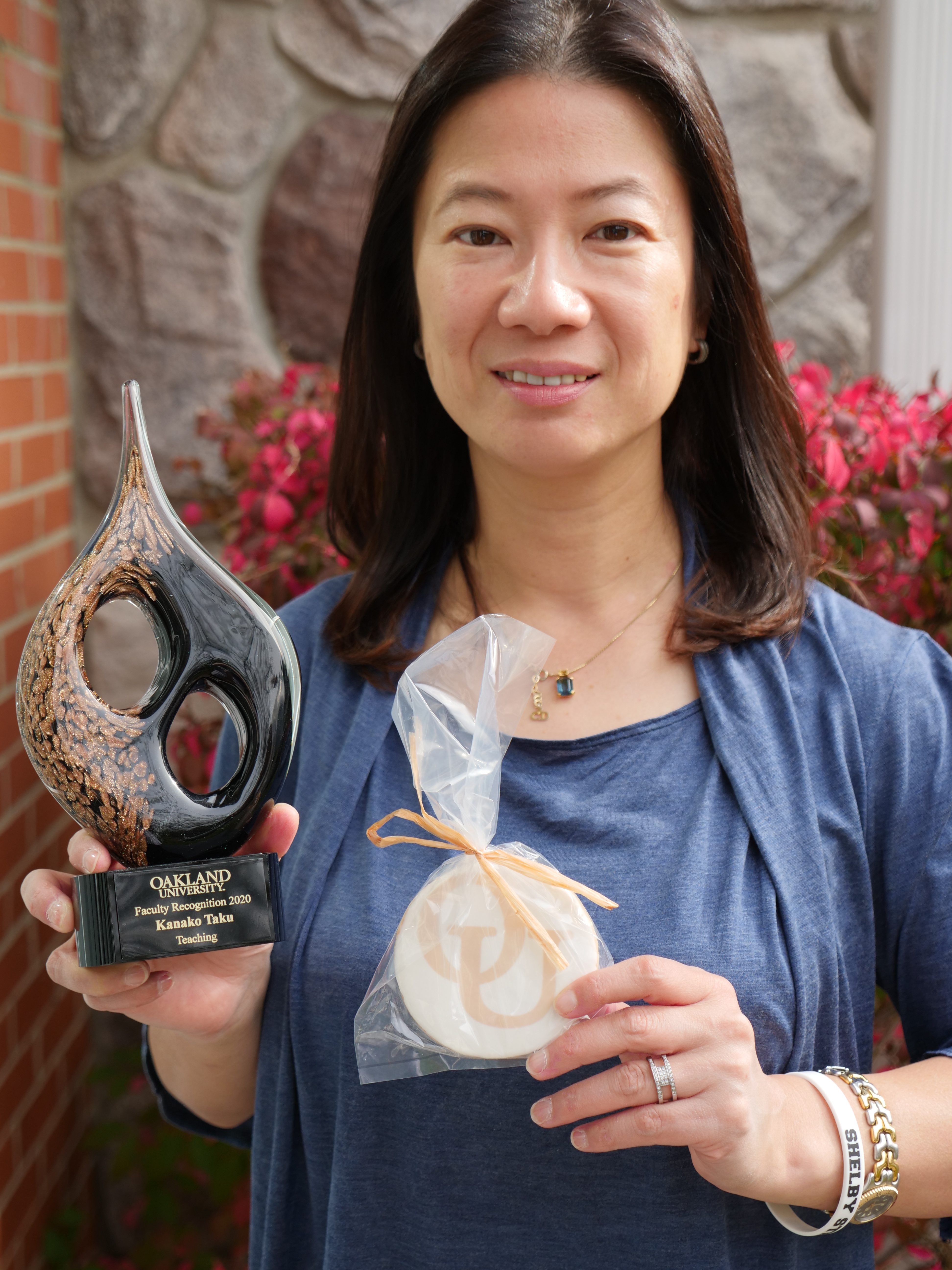 The annual Founders’ Day Faculty Recognition event commends faculty members whose teaching and research excellence, creative achievements, and community service have contributed to the betterment of society. They honor OU faculty members for their scholarly achievements and dedication regarding research and critical teaching roles in educating the leaders of tomorrow. This year, the FF-PTG lab’s very own director, Dr. Kanako Taku has been awarded as an honoree for her teaching. In regards to her skills in the classroom, Dr. Taku “helps her students find success by using data derived from students, making students more involved and classroom time more engaging.” But her dedication and passion for teaching goes beyond the classroom: “the students that she has supported have found success, earning awards, grants and presenting work at local, national, and international conferences”. Congrats Dr. Taku! The lab is extremely proud of you and all of your accomplishments!