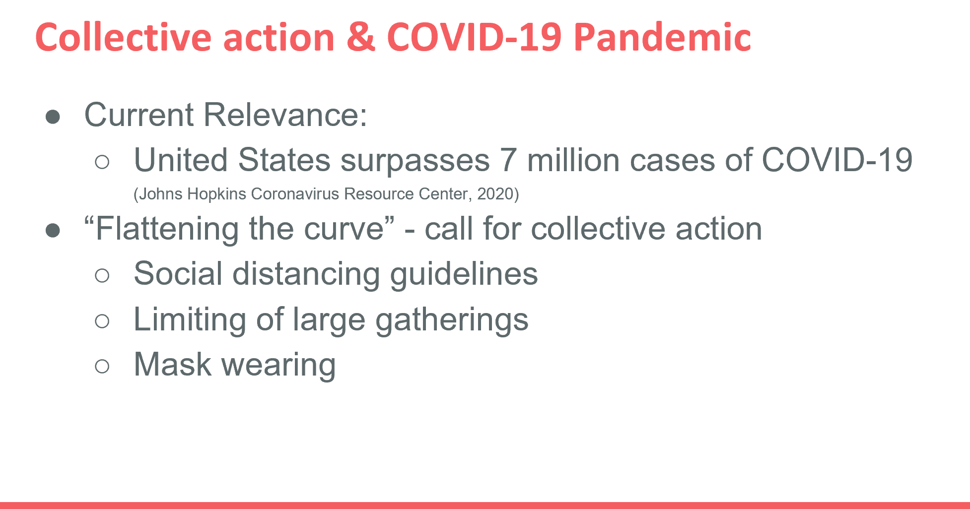 Recently, first year PhD student Kayla presented a proposal for her master’s thesis titled Growing Toward the Common Good: Collective Action During COVID-19. Kayla is interested in examining how experiences of COVID-19 may impact action focused growth, in which individuals find meaning in traumatic events by translating growth into action. With her study, Kayla is hoping to gain insight into how action focused growth contributes to collective action and to further understand how the bystander effect relates to people promoting the “common good” during the ongoing pandemic.