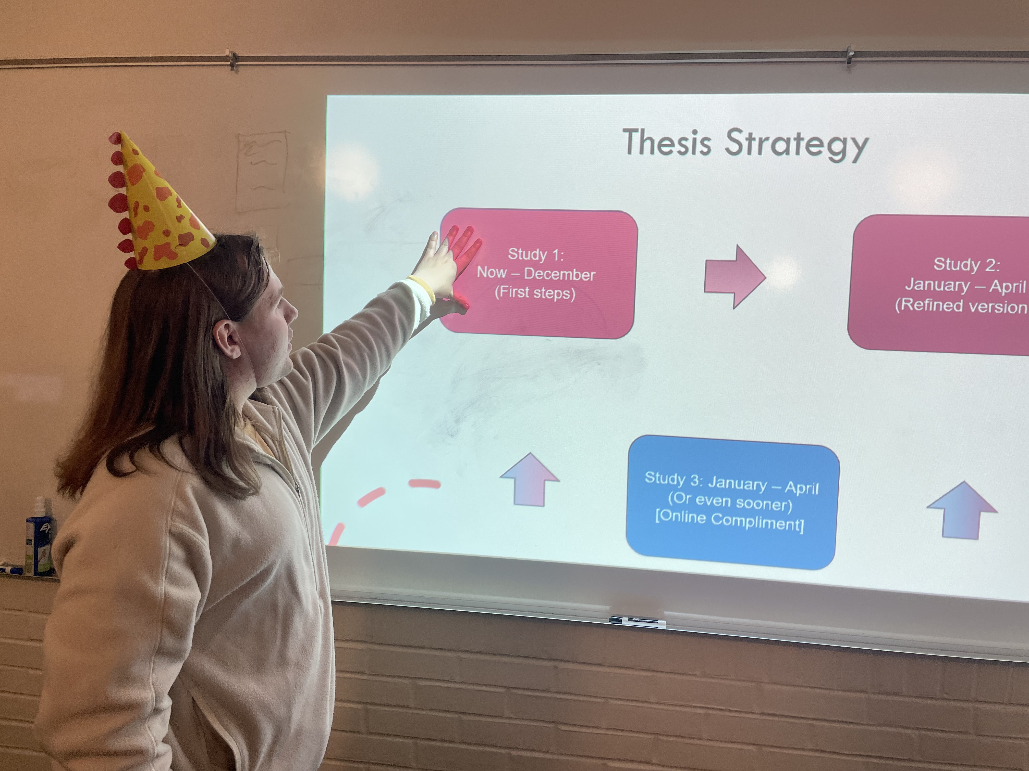 Paxton Hicks, a first-year graduate student and former lab manager, captivated our attention with his recent presentation on his study titled, “Academic Integrity and Lying” to celebrate his birthday! In his study, Paxton delves into the realm of deception, exploring tipping points that show the dynamics of honesty in academic settings.