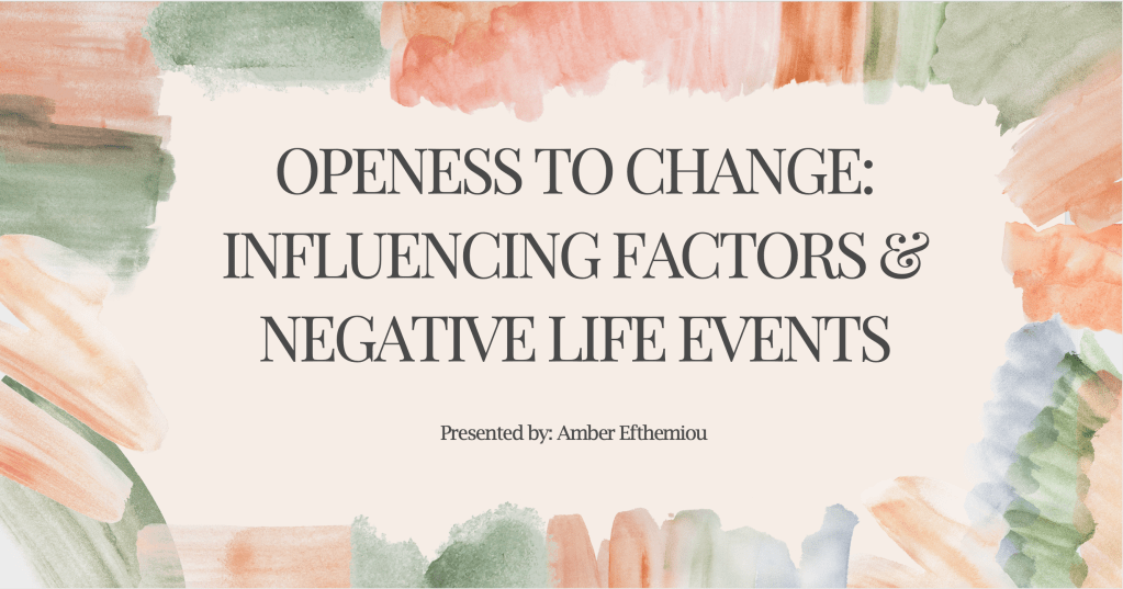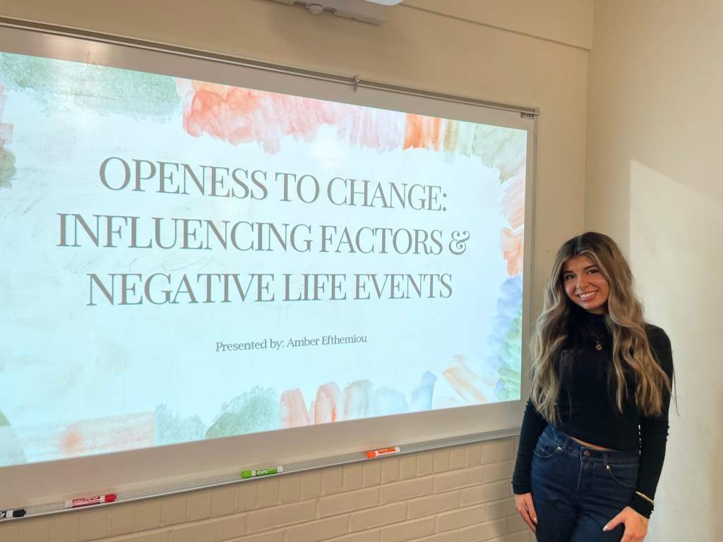 Amber, a third-semester undergraduate research assistant, recently completed a presentation in which she shared ideas about her independent study that she will be working on titled “Openness to Change: Influencing Factors & Negative Life Events”.