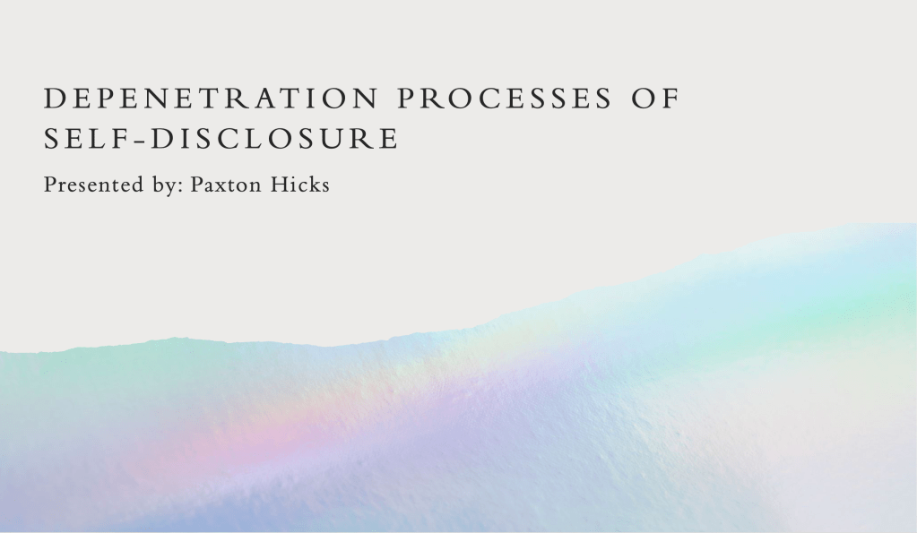 Paxton is intrigued by the exploration of Self-Disclosure, a deliberate process involving the communication of personal information to another individual, and its impact on intimacy. The concept of intimacy, in this context, encompasses both the nature of the shared information and the quality of the relationship itself. Engaging in Self-Disclosure not only fosters increased relational intimacy but also results in heightened liking, enhanced life satisfaction, and, ultimately, a greater propensity for sharing information with more breadth and depth. The Social Penetration Theory underscores that as we acquire more information about a person, the depth of that information intensifies, progressing from superficial details to core aspects such as fears and negative attributes. This interplay aligns with the depenetration process, where individuals become less open or revealing over time, potentially leading to a shallower level of connection in a relationship. This thesis aims to identify depenetration processes and observe the point at which individuals begin to recede their own self-disclosures.