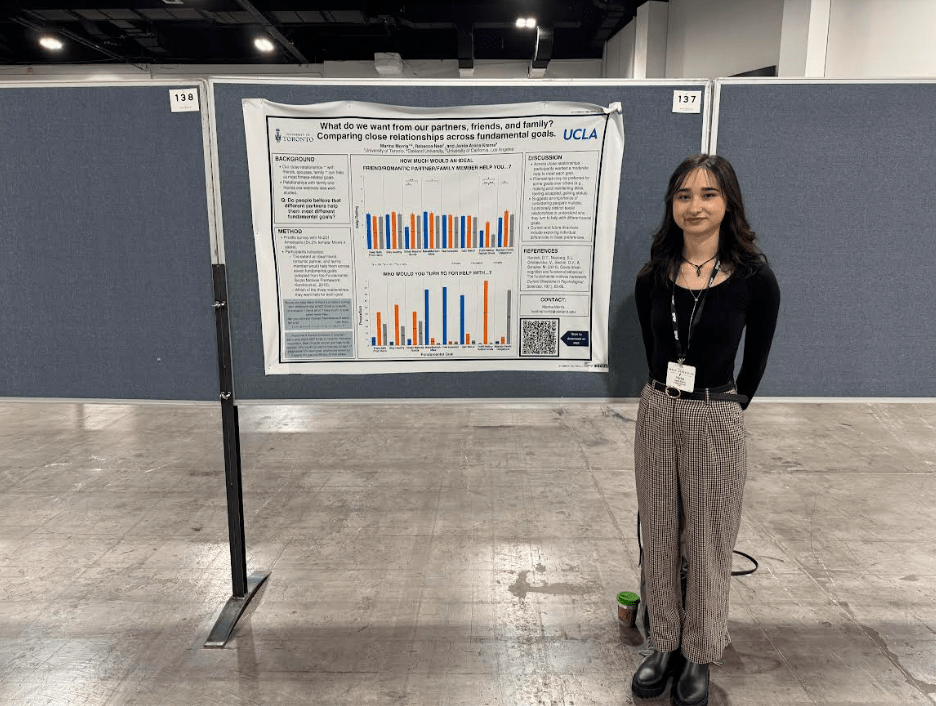 After working with her supervisors, Dr. Rebecca Neel from the University of Toronto, and Dr. Jamie Arona Kerms from UCLA, Marina presented her poster regarding what people want from their family, partners, and friends. Specifically examining the commonality between goals and those close to us.
