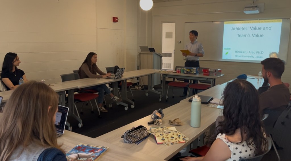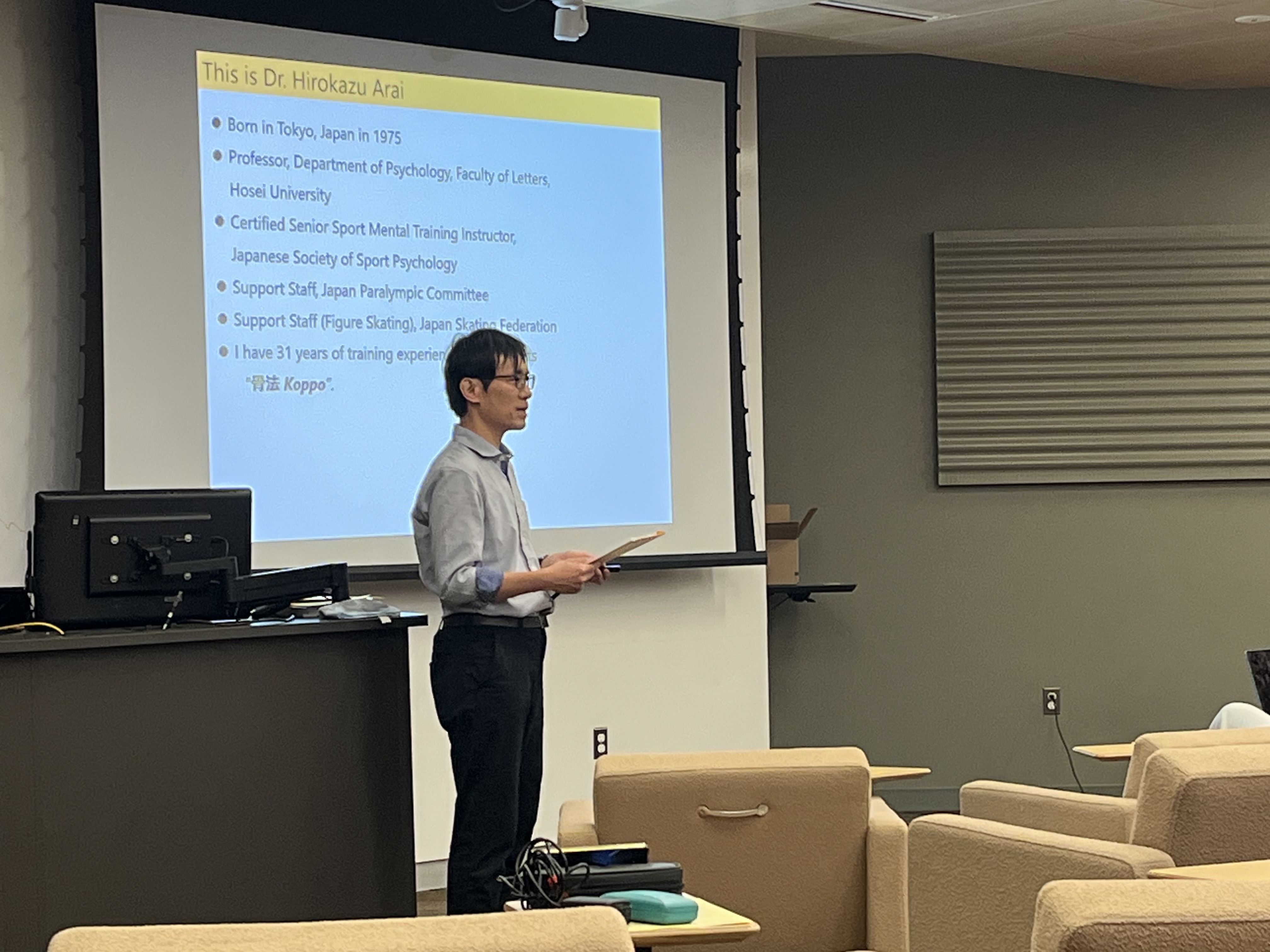Last week, the FF-TIP Lab welcomed Dr. Hirokazu Arai from Hosei University in Japan. Dr. Arai joined us for our weekly lab meeting to share his research and give a “step-back” presentation on a new project he is undertaking. In this presentation, he discussed how values held by an individual athlete may differ from those of their coaches or the team as whole. Dr. Arai sought input on who should be the target this research and what kind of studies could help address situations in which these values may be misaligned.